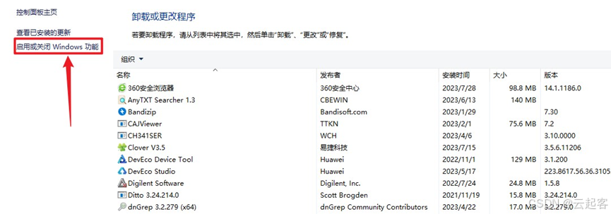 点击 “启用或关闭Windows功能”,具体如下所示:
