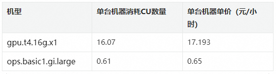 如:1台 ops.basic1.gi.large 部署开发服务的价格=1.07元/CU/小时*0.61*1=0.65元/小时