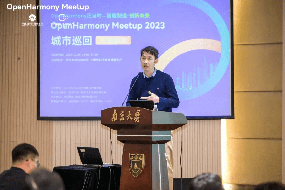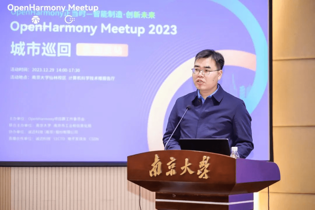 12月29日,OpenHarmony Meetup 2023 城市巡回-南京站活动成功举办。本次大会由OpenHarmony项目群工作委员会主办,南京大学、南京市工业和信息化局联合主办,诚迈科技承办,以“OpenHarmony正当时——智能制造·创新未来”为主题。南京市工信局领导、开放原子开源基金会专家、南京大学教授、产业链代表企业齐聚一堂,深入解读OpenHarmony作为下一代智能终端操作系统在工业领域的创新实践和行业应用,共同探讨OpenHarmony与智能制造融合发展的未来趋势和发展机遇。