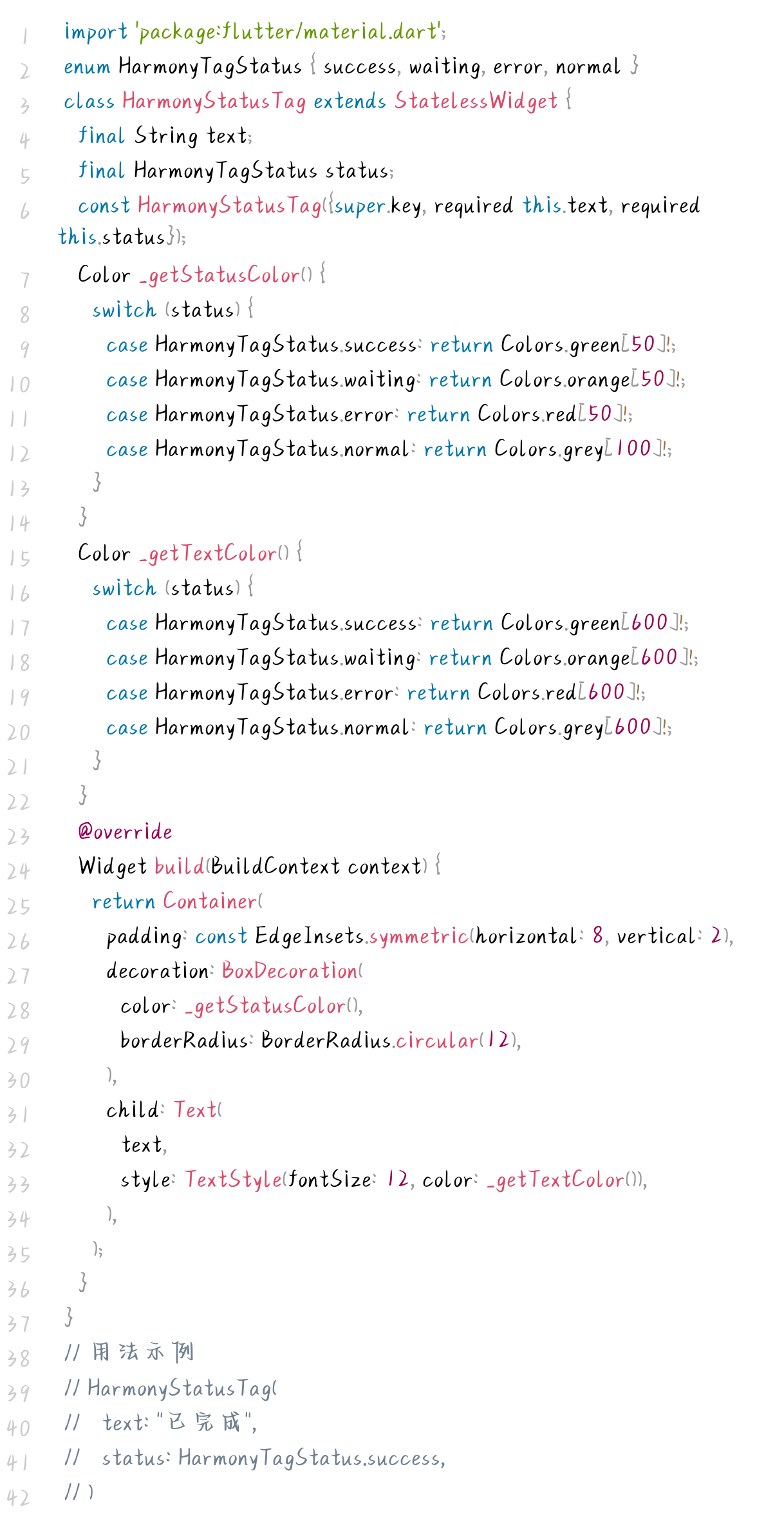 - 语义清晰:通过枚举定义状态,颜色与状态强关联,信息传达直观;