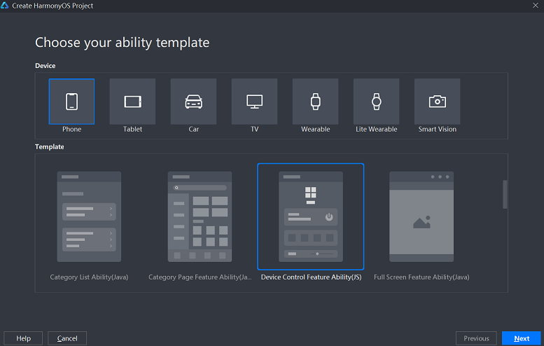 下载了最新的DevEco Studio最新版本后,我发现new project的时候有个新的设备控制模板,正好对鸿蒙的碰一碰非常感兴趣,就试着体验一下,在此我把使用经验分享一下~