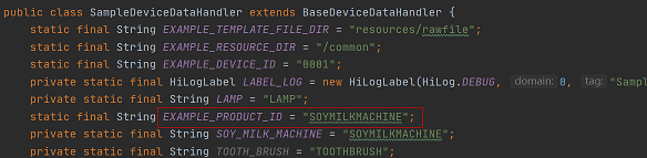 根据readme的说明, SampleDeviceDataHandler.java提供了示例代码,我就试了下把SampleDeviceDataHandler 的EXAMPLE_PRODUCT_ID改成豆浆机