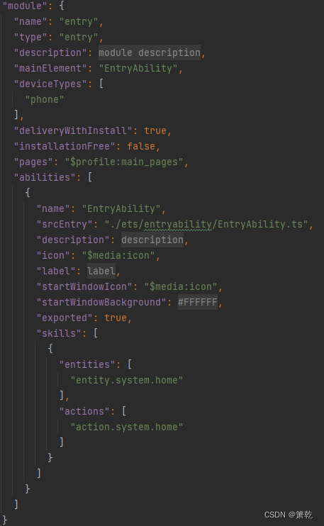 entry>src>main>module.json5是模块的配置文件,包含当前模块的配置信息。
