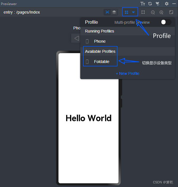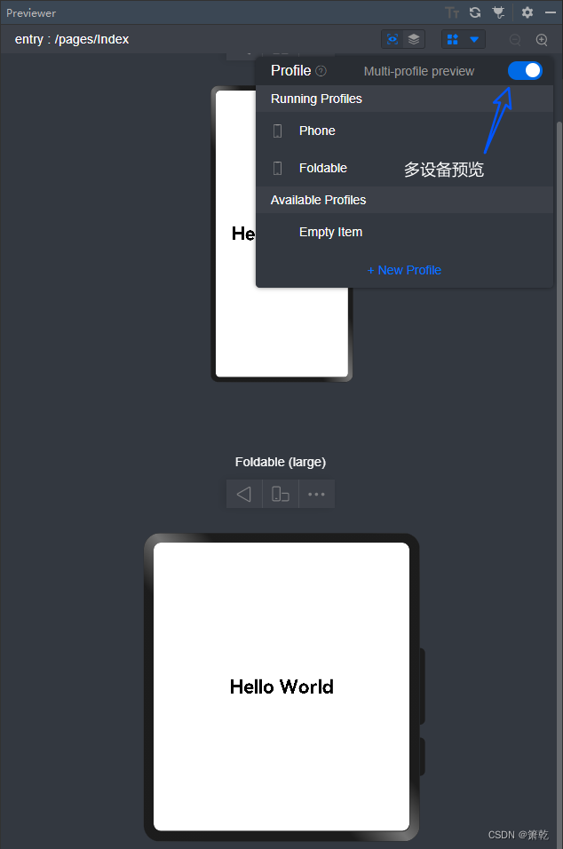 打开Muti-profile preview开关,可以实现多个尺寸设备的实时预览。
