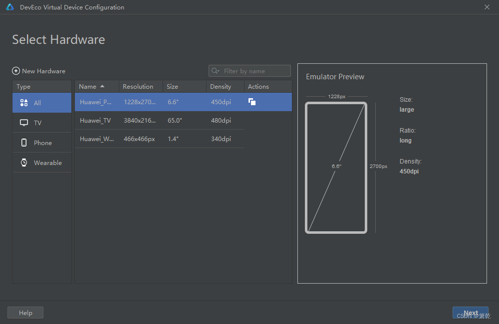 选择Huawei_Phone手机模拟器,单击'Next',进入模拟器系统下载页。