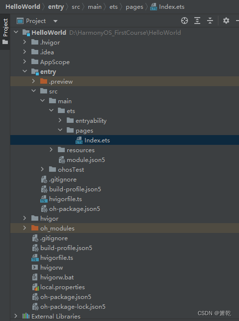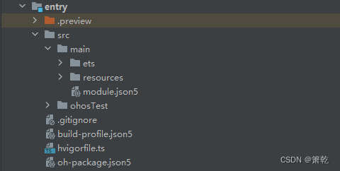 - entry是应用的主模块,存放HarmonyOS应用的代码、资源等。