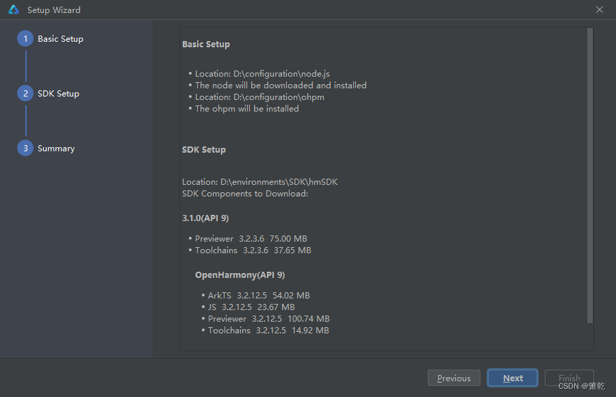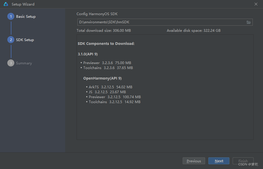 单击'Next'进入SDK配置,设置为合适的路径,