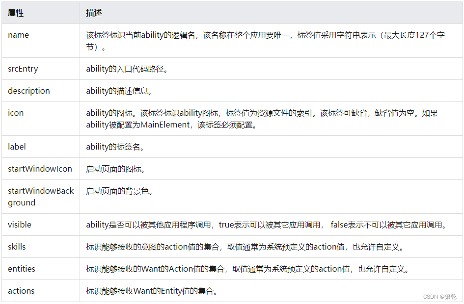 对于abilities中每一个ability的属性项,其描述信息如下图: