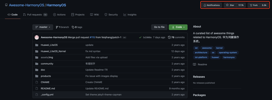 这是一个与 HarmonyOS 相关的精彩内容的精选列表。目前已经在Github标星 17.7K(Github地址:https://github.com/Awesome-HarmonyOS/HarmonyOS)