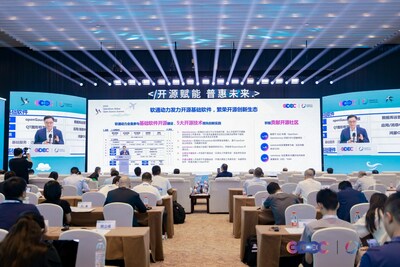 开放原子开源基金会理事长助理刘京娟在致辞中,首先阐述了开源运动的起源、开源与商业化的关系。开放原子开源基金会自成立以来就秉承着以繁荣开源事业,共享开源价值的愿景,鼓励并支持开源商业化的发展。刘京娟指出:"软通动力作为开放原子开源基金会的白金捐赠人,将开源战略与自身战略相结合,在技术创新、产品研发、人才培育、社区共建、商业落地等方面具有丰富的成功经验,有力地促进了开源事业的高速发展。"
