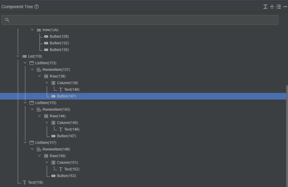 我打开了DevEco Studio中的ArkUI Inspector,连接上真机设备后,工具立即显示了当前页面的UI层级树。通过这个层级树,我清晰地看到了每个组件的嵌套关系,而且还可以看见组件间的布局信息。原来,规格选择按钮的父容器内间距属性设置错误,导致按钮在部分设备上显示不全。而在用户评价列表中,组件的高度被错误地设置了,导致布局不一致。