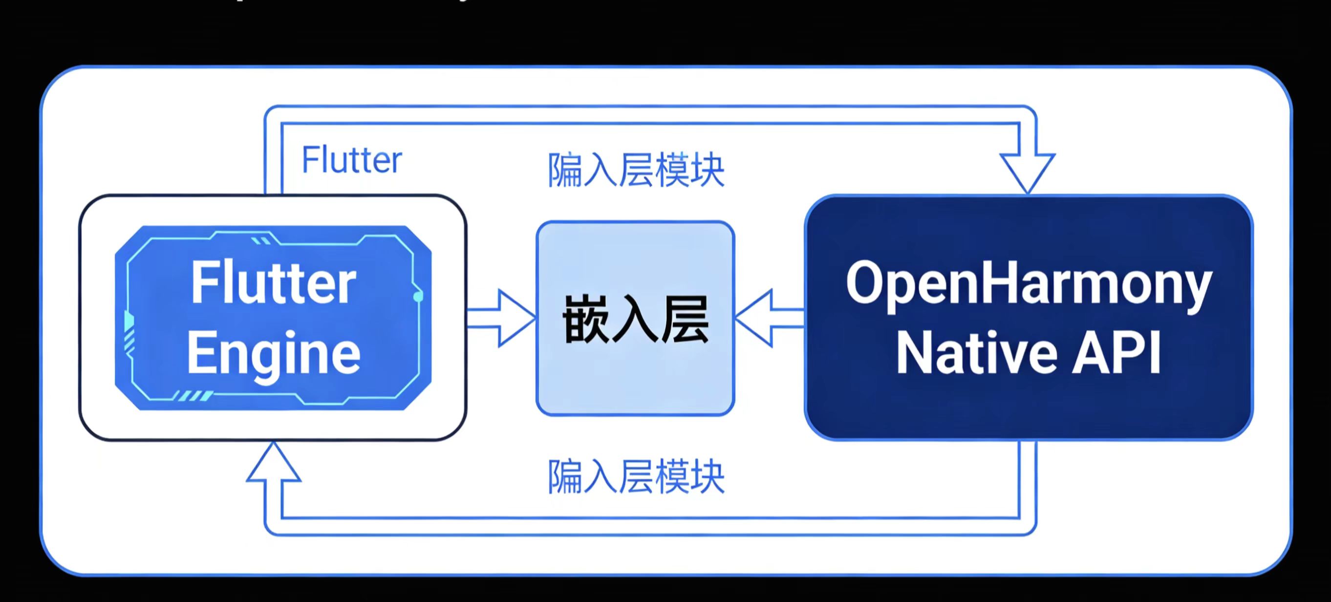 Flutter 通过嵌入层(Embedder)与原生平台进行深度交互。OpenHarmony 作为新一代操作系统,其架构设计支持标准的 C/C++ 接口调用,这使得 Flutter 引擎能够以动态链接库(.so)的形式无缝集成到鸿蒙应用中。具体实现时需要注意以下关键适配点: