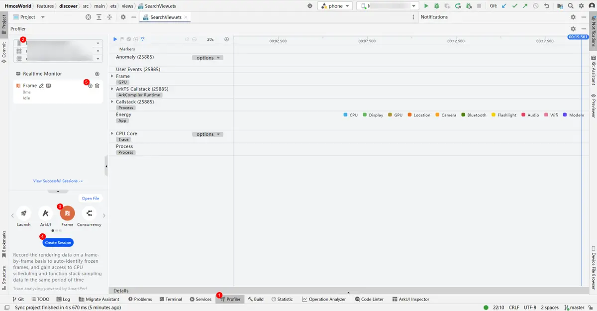 - 抓取操作trace:启动DevEco Studio,连接设备,打开应用,然后依次执行以下操作。