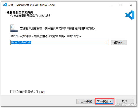 进入选择开始菜单文件夹页面,默认即可,点击下一步,如下图所示: