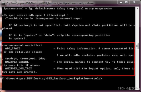 进入到“USB_fastboot_tool\platform-tools”,用户在打开“cmd.exe”程序后,这个就是 Windows 命令行。