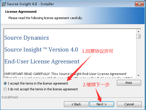 3)如下图,选择接受安装协议,然后单击“Next”,继续安装。