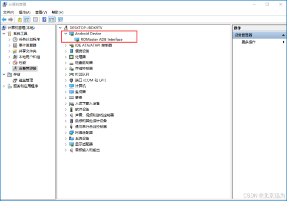 打开设备管理器, 可发现 ADB 安装成功,