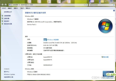1)如下图,进入操作系统的“控制面板”-->“系统和安全”-->“系统”。