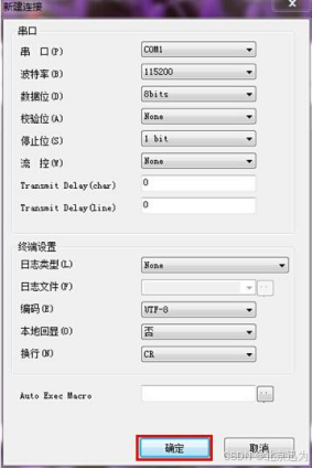 4)如下图,单击“确定”按钮,超级终端设置完成。