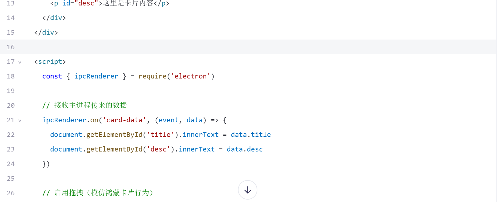 第三步:渲染进程 renderer/card.html