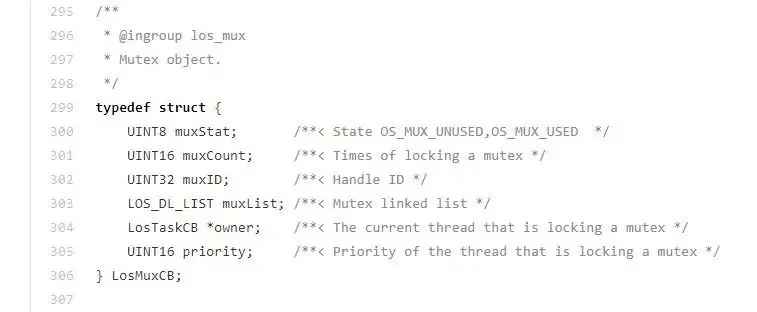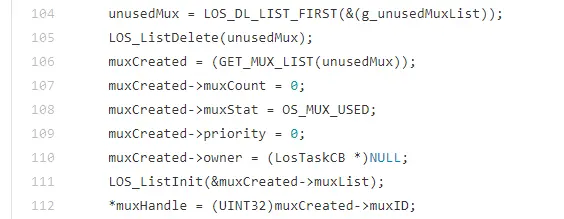 在los_mux.h中,通过增加muxList字段将所有空闲的互斥锁组织成链表