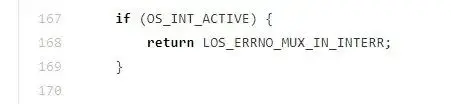 由于在中断上下文中不允许有睡眠操作,而互斥锁获取逻辑就是典型的具有睡眠操作的逻辑,所以,互斥锁的获取和释放不能在中断上下文中,如下(los_mux.c中)。