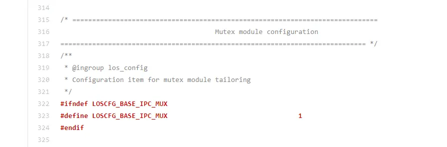 互斥锁软件模块是编译可裁剪模块,可以通过编译配置宏来打开或者关闭具体的编译配置宏定义在https://gitee.com/openharmony/kernel_liteos_m/blob/master/kernel/include/los_config.h文件中