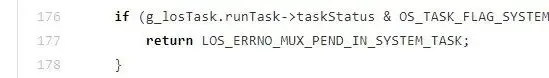 一些系统关键任务运行后,不允许执行IPC逻辑,比如软件定时器任务:其监控多个定时器的超时。假定其执行IPC逻辑导致任务等待某资源比较长的时间,会导致后续部分定时器定时功能失效(不准确)。代码如下(los_mux.c):