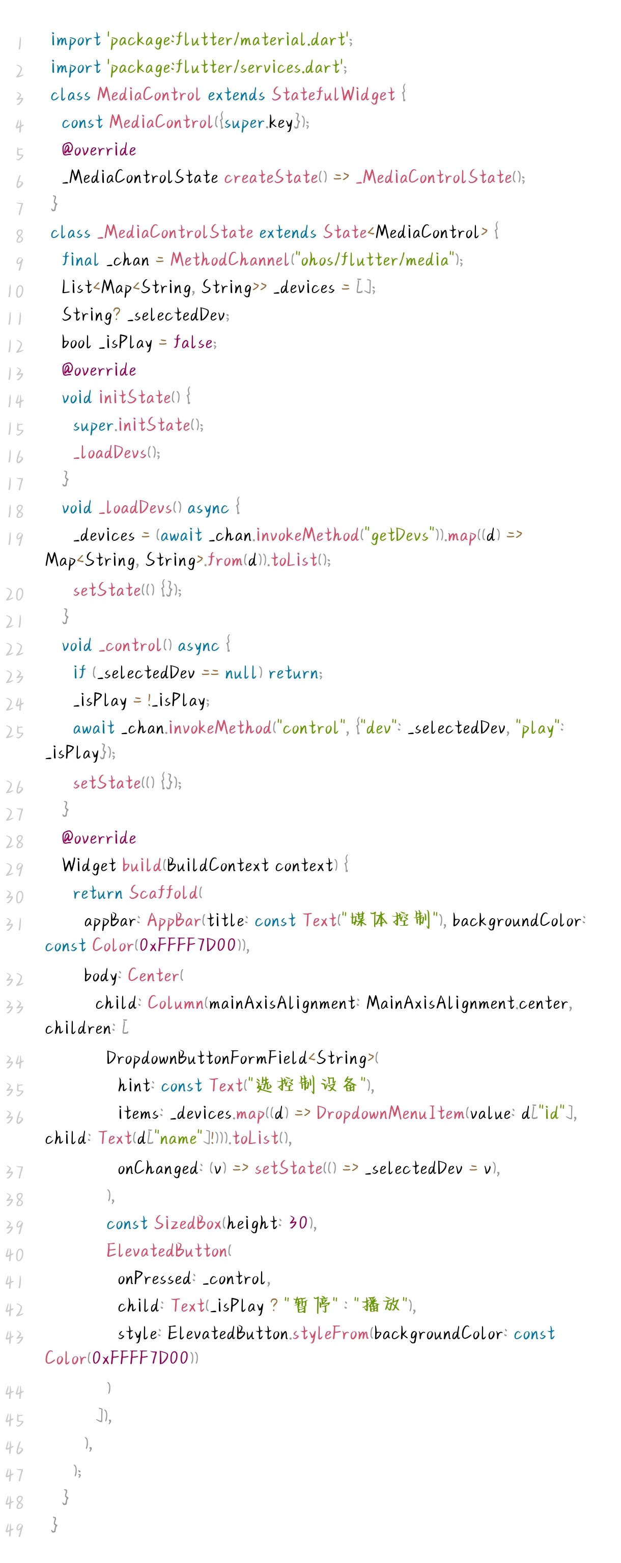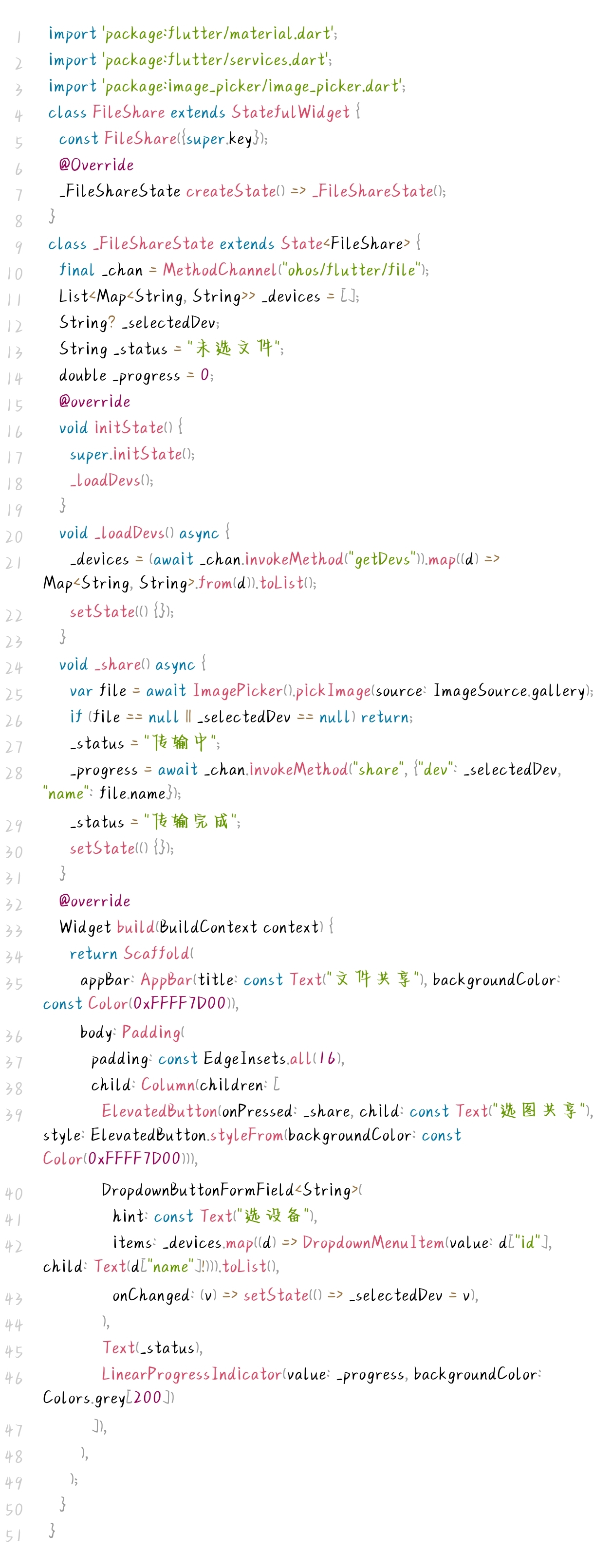 采用单一MethodChannel实现跨端交互,核心逻辑简洁高效: