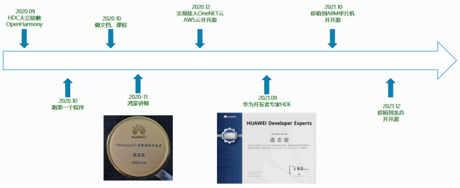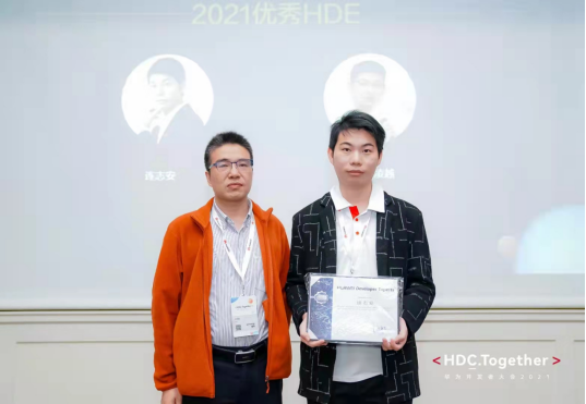 那时候,我就想着,我也要成为其中的一员,贡献自己的一份微薄的力量。也很荣幸,2020年的HDC大会上,我还只是台下一名观众,到了2021年,我已经跟着OpenHarmony一起成长,并且在2021年的HDC大会上做分享并获得优秀HDE称号。