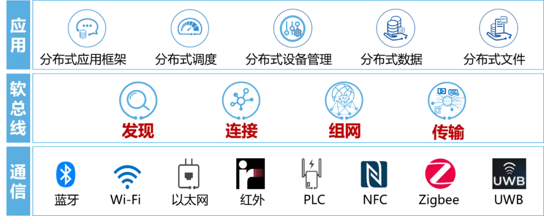 分布式软总线致力于实现近场设备间统一的分布式通信能力,提供不区分链路的设备发现和传输接口,具备快速发现并连接设备,高效分发任务和传输数据。分布式软总线是HarmonyOS架构中的底层技术,是HarmonyOS的大动脉,其总的目标是实现设备间无感发现,零等待传输。对开发者而言,无需关注组网方式与底层协议。