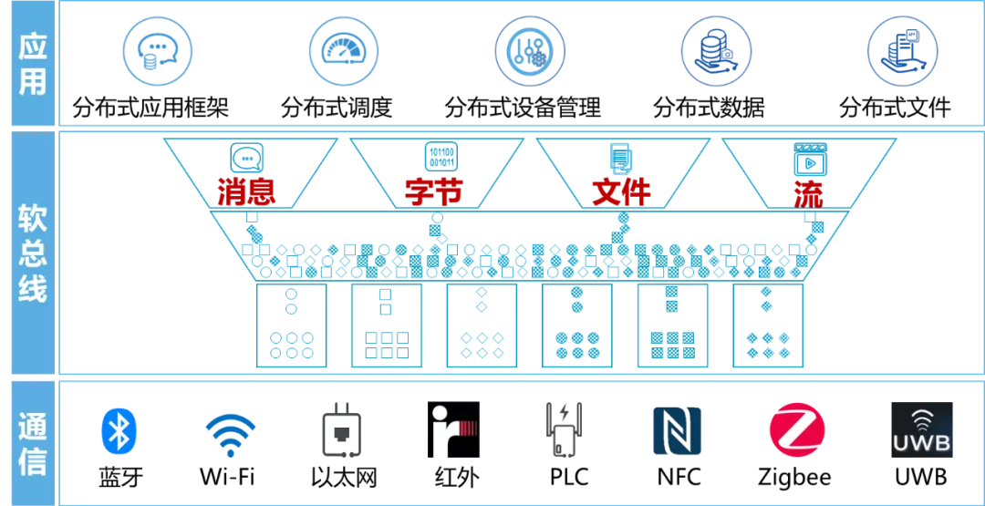 消息和字节数据模型,主要服务于设备间任务流转能力的构建,是分布式软总线中任务总线能力的基础。文件和流数据模型,主要服务于设备间分布式数据传输,是分布式软总线中数据总线能力的基础。