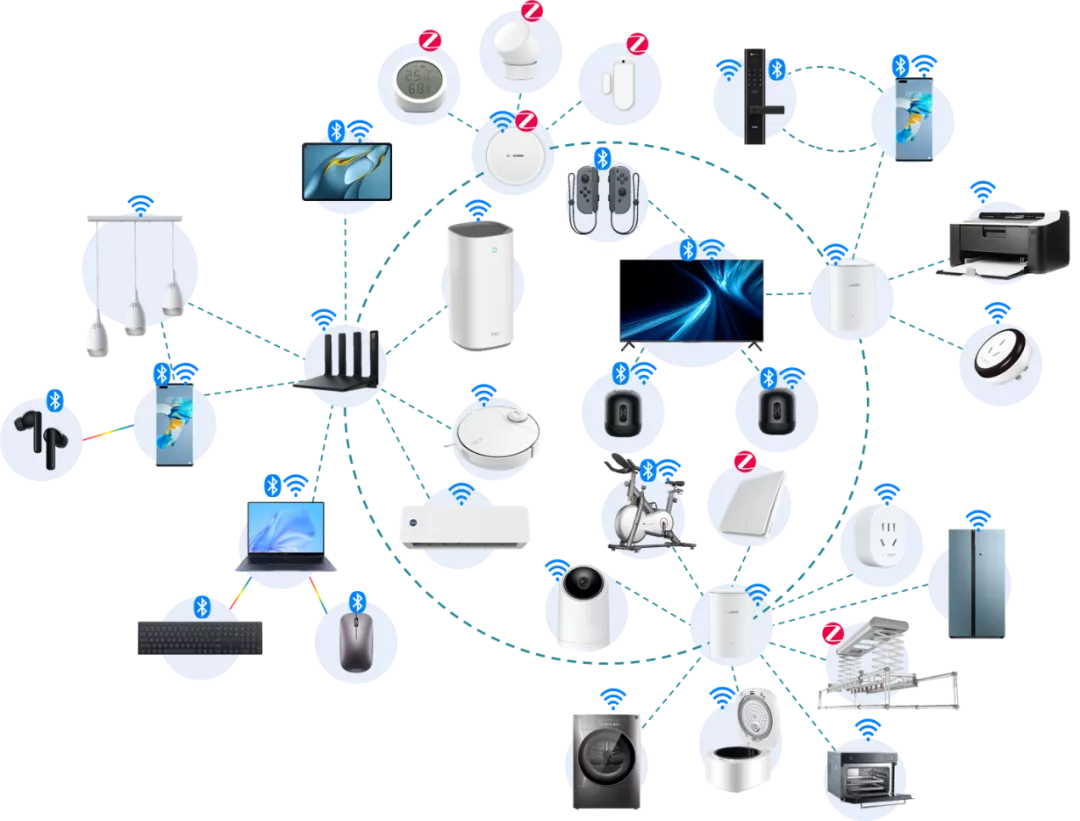 挑战:家庭场景下涉及的设备数量众多,在丰富人们生活的同时,也为设备互联互通带来了巨大的挑战。同时,设备间的连接方式复杂,并且由于房屋结构的关系,无线信号干扰、衰减、遮掩的问题也较多。另外,由于家庭场景下业务的多样性,如何通过网络构建使得设备之间的互联互通更加可靠、安全,并能够基于业务和网络状态进行质量优化和合理调度,是家庭环境下最大的挑战。