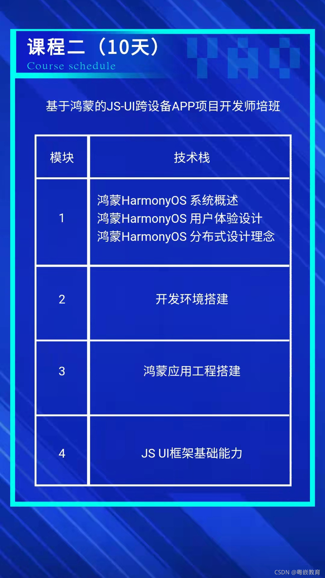 在过去的1年多时间,粤嵌课研中心结合鸿蒙项目开发技术和高校教学需求开发了《基于HarmonyOS的分布式APP项目开发》、《基于HarmonyOS JS-UI跨设备APP项目开发》共2套项目式师资培训课程,旨在通过师培可以有效地赋能高校教师,从HarmonyOS技术分析到项目开发,从实践案例到教学方案设计与实施,都可以在师培课程中一次性获得。