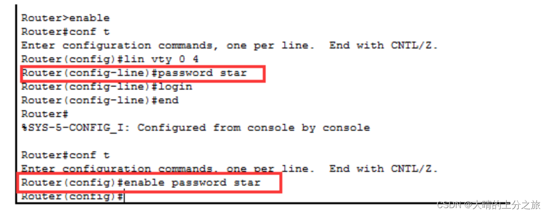 使用line命令进行远程设置,必须先设置远程登录密码和特权模式的密码如下图: