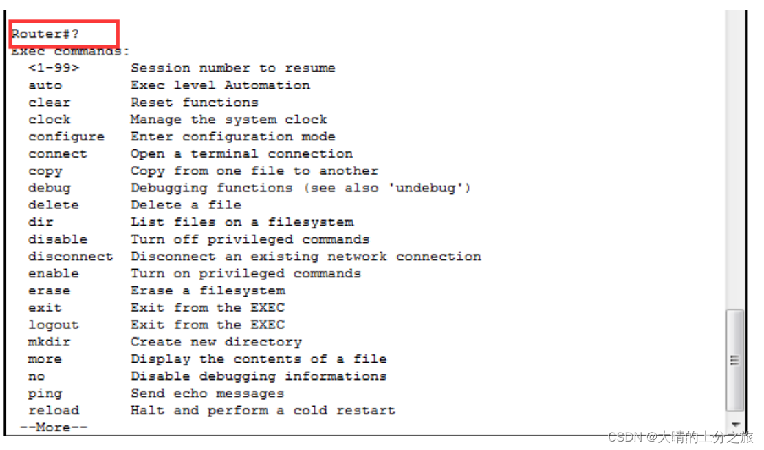 1)帮助命令,在任何位置都可以使用“?”得到帮助
