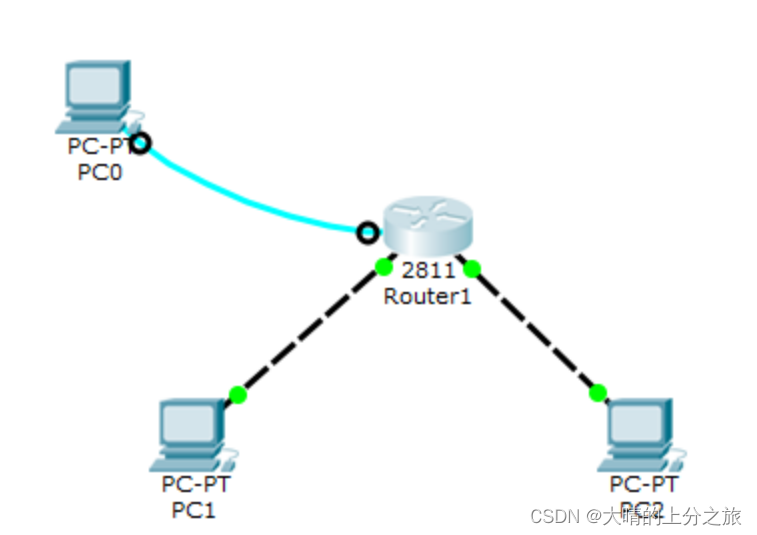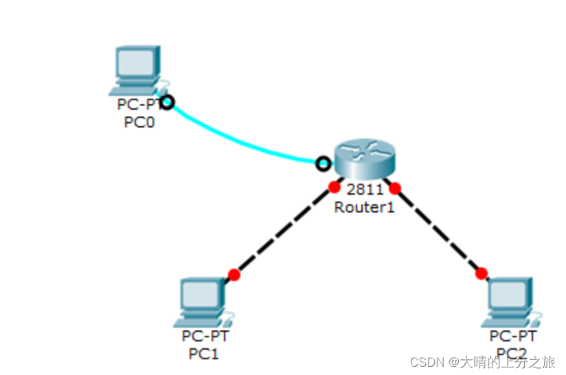PC1和PC2的网口通过交叉线与路由器的网口相连接;