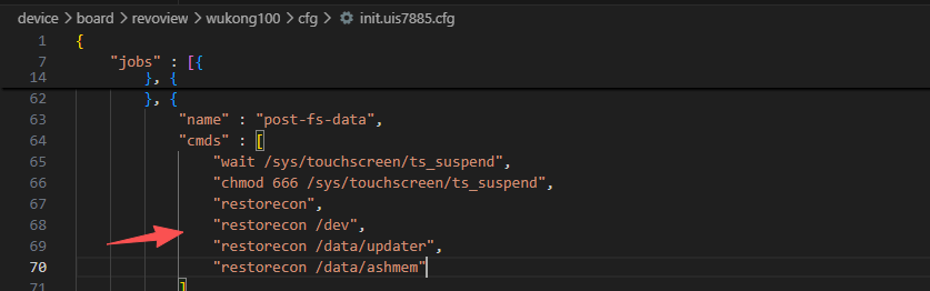 restorecon放在“post-fs-data”项的cmd中,因为“init”项的cmd命令优先于“post-fs-data”项执行。