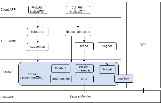 d_y_m123 2025-04-10 15:18:55 在ohos5.1的底座上适配tee环境,有没有具体方案,在做的过程中发现涉及了kernel,tee client和tee app等几个方面如下图