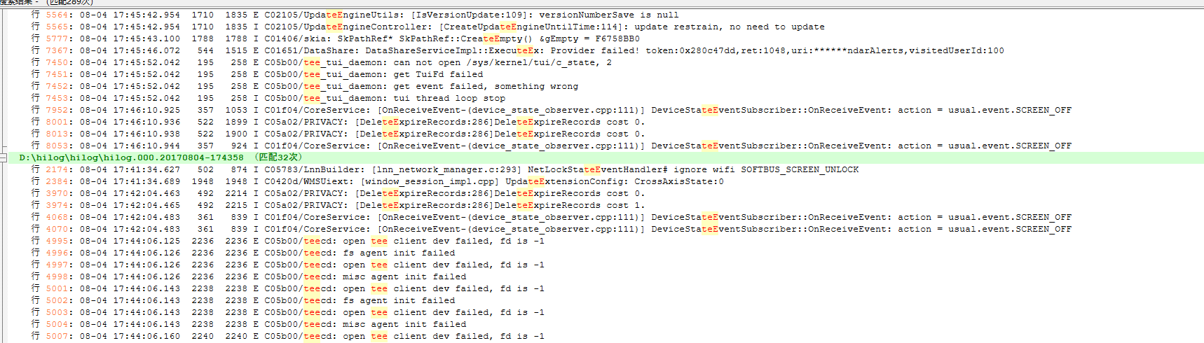 说明适配的有问题呗,你可以按照适配流程先排查一下。 排查方向: 1. 检查 TEE 驱动模块是否加载成功,确认内核配置中是否启用了对应 TEE 支持 2. 检查设备节点是否创建 3. 确认 teecd 启动命令及其权限是否配置正确 4. 检查 SELinux 是否阻止相关操作 日志中可以看到: avc: denied { ... } scontext=... tcontext=... tclass=... 大量 SELinux 拒绝日志,可能 tzdriver 的注册或 teecd 的启动过程被拦截